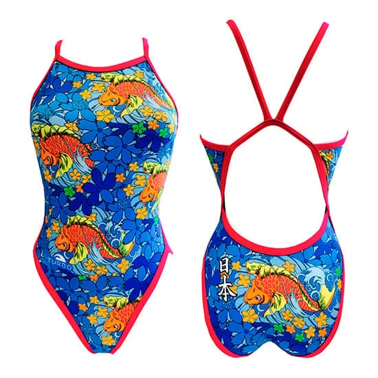 | Farben | Badeanzug Turbo Japan Vibes Revolution Thin Strap blau Damen, Badeanzug Turbo Japan Vibes Revolution Streifen dünne weiße Frau |
